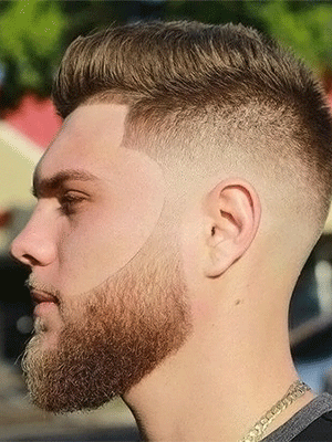 Barba curta encaixada: Uma barba curta com laterais finas e aparadas com cuidado